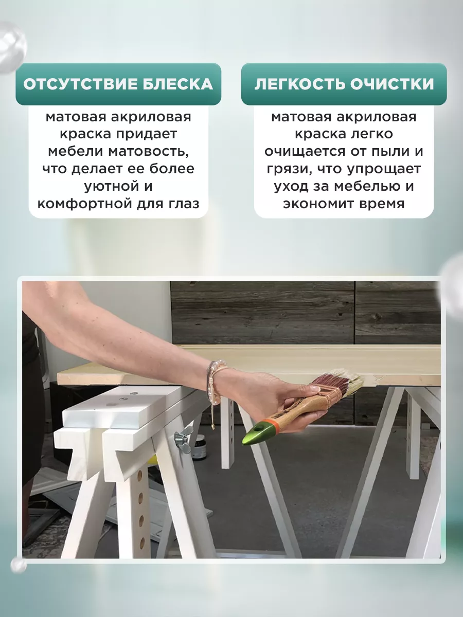 Акриловая краска для мебели и дерева "Слоновая кость" от бренда "Лофт и дерево" предлагает идеальное решение для обновления вашего интерьера или экстерьера. Эта краска создана для работы как на внутренних, так и на наружных поверхностях, таких как ЛДСП, дерево и пластик, обеспечивая долговечное и красивое покрытие. Специальный состав на основе акрила и воды гарантирует высокую степень адгезии и быстрое высыхание за 2 часа, что позволяет быстро завершить работу. Матовый блеск краски добавит изысканности и элегантности вашим предметам мебели, создавая уютную и гармоничную атмосферу в любом пространстве. Выбирайте "Слоновую кость" от "Лофт и дерево" для достижения идеального результата в любом проекте.