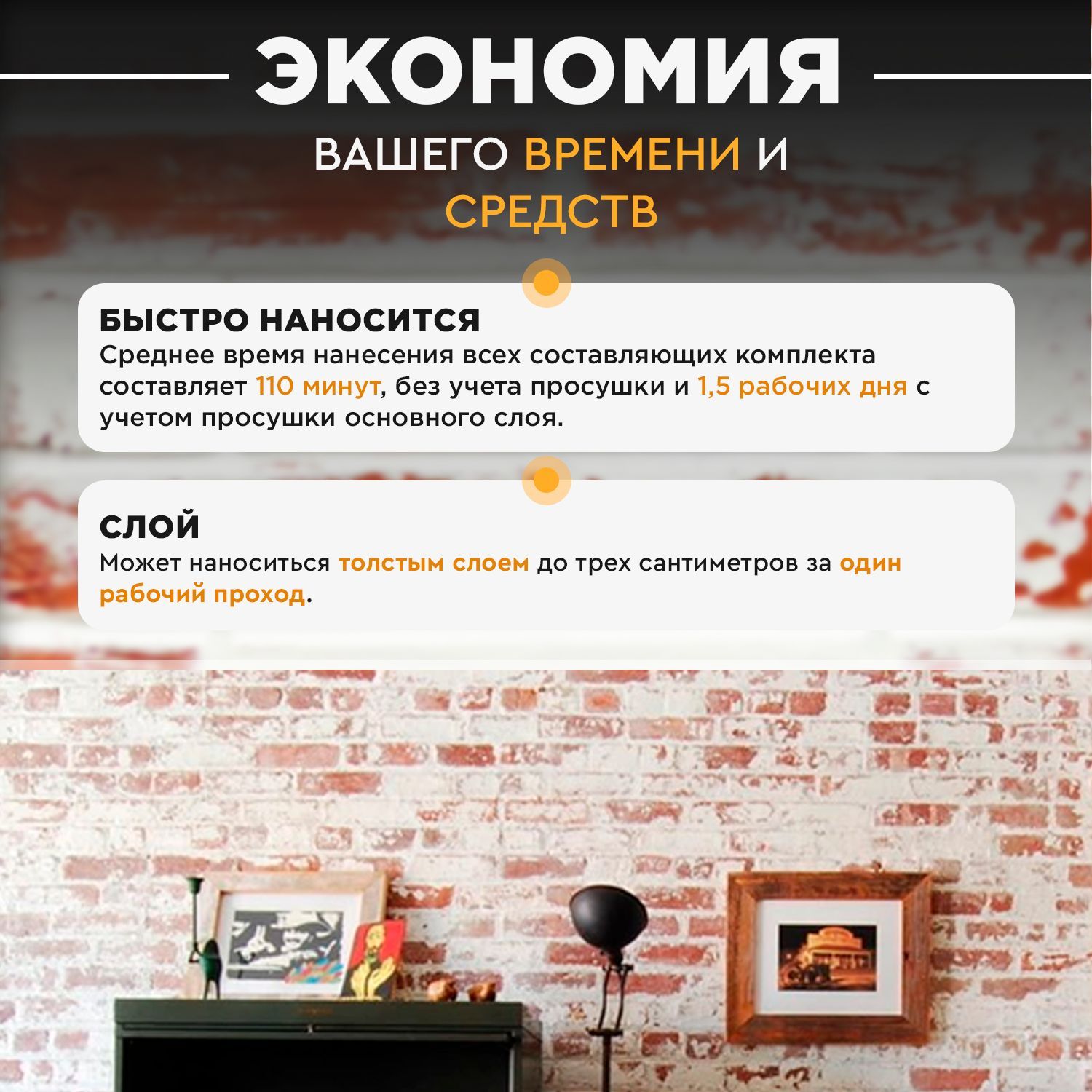- Прост в нанесении и не требует специальных навыков. Технология имитации кирпичной стены при помощи комплекта Loft 25 доступна любому творческому человеку.