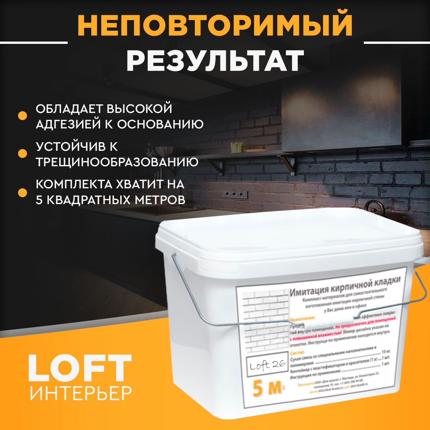 - Прост в нанесении и не требует специальных навыков. Технология имитации кирпичной стены при помощи комплекта Loft 3 доступна любому творческому человеку.