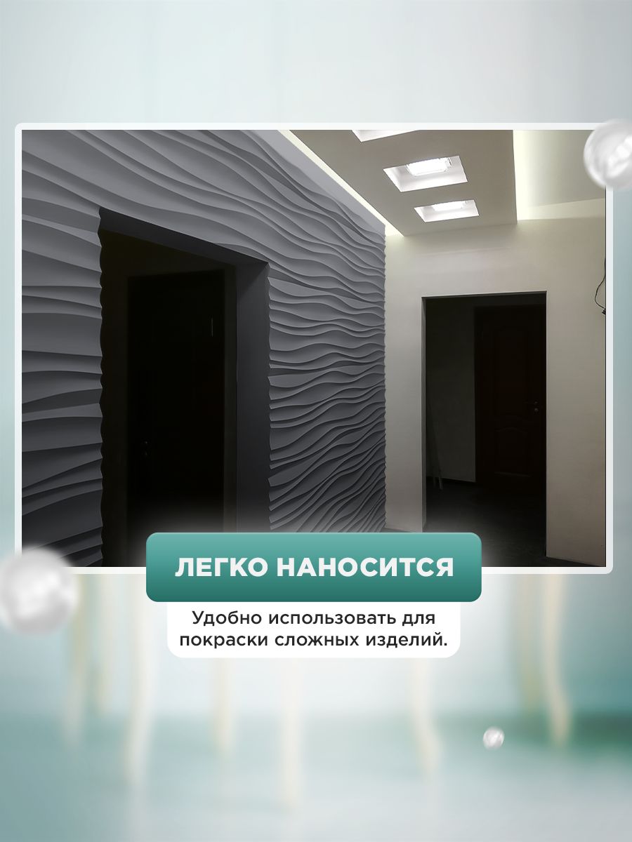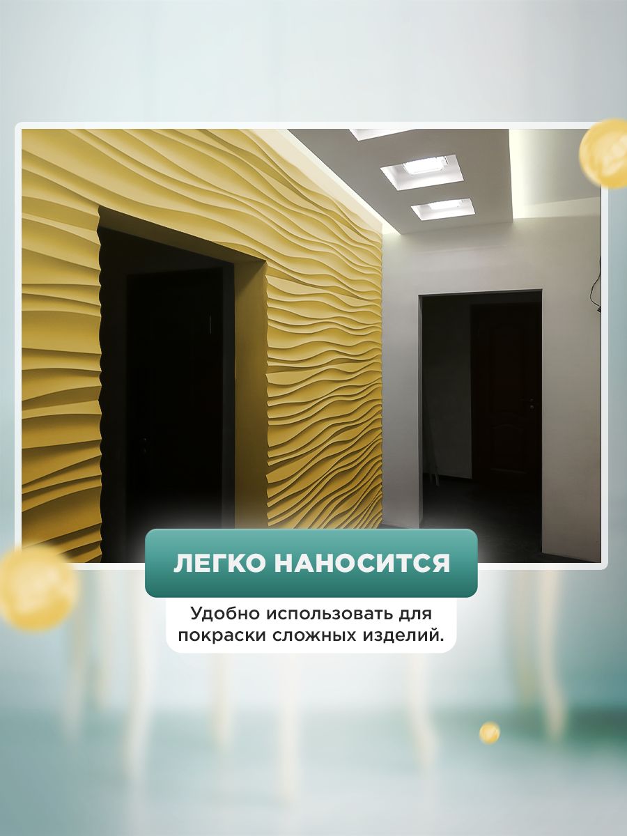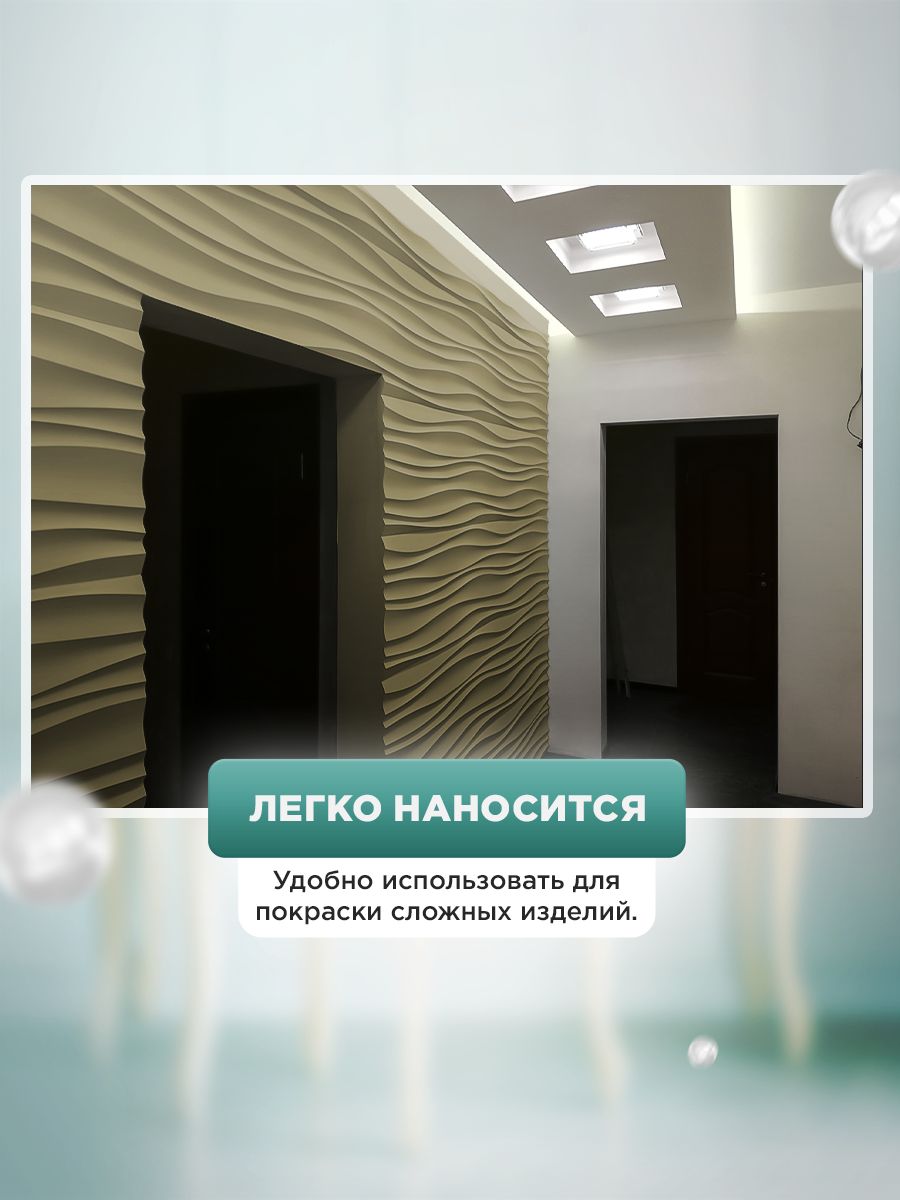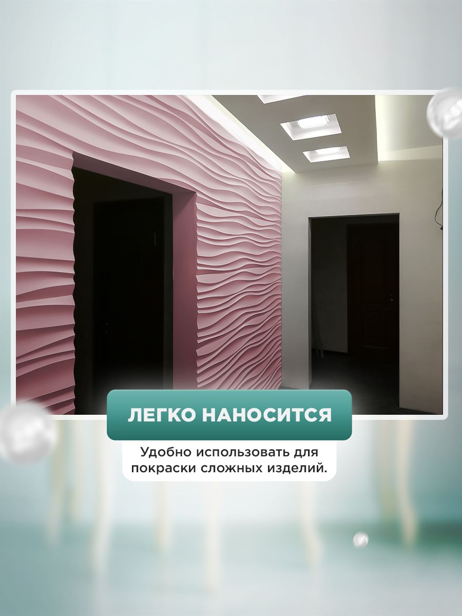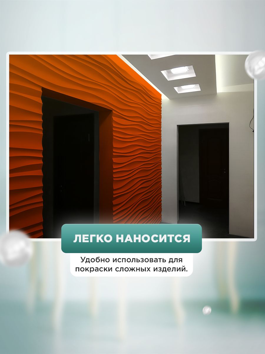 - Высокая укрывистость — перекрывает даже тёмные поверхности за 1–2 слоя (по ЛДСП, дереву, пластику, МДФ).