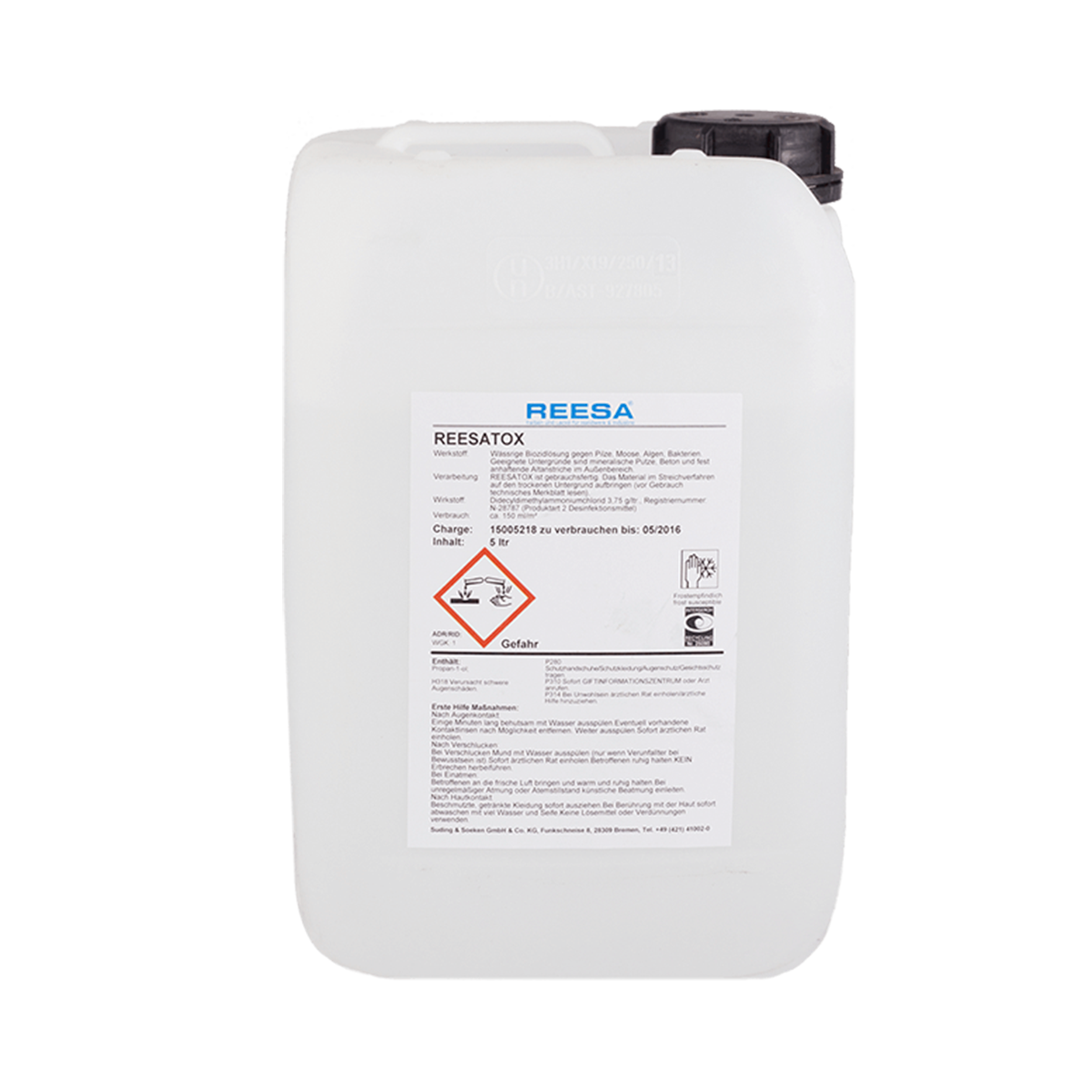 REESATOX 9W001, средство от грибка на фасаде, антисептик для наружных работ, защита от плесени и водорослей, Reesa Германия, биоцидный раствор, обработка стен от мха, купить антисептик для бетона, средство от грибка для кирпича, Reesa 9W001 цена, защита фасада от биопоражений, раствор против плесени снаружи, антисептик для штукатурки, удаление водорослей со стен, профессиональный биоцид Reesa